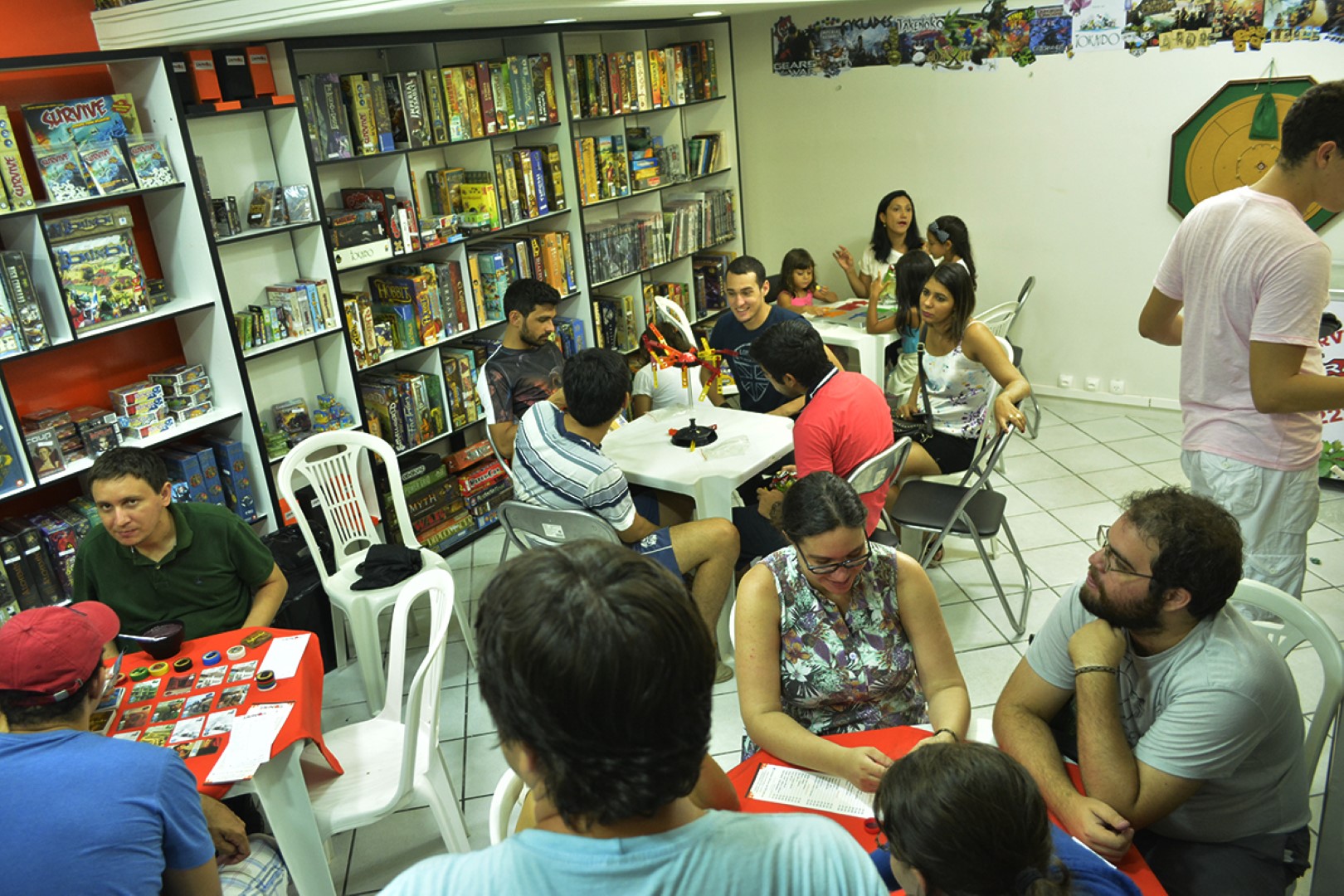 “São muitos jogos fantásticos, hoje a gente conta com o acervo de 110 a 120 títulos de jogos diferentes para venda. Além disso, tem 230 a 250 jogos para aluguel e experimentação. Nós estamos dispostos a ensinar a galera a brincar com os jogos”, explicou Hélio Alcântara.