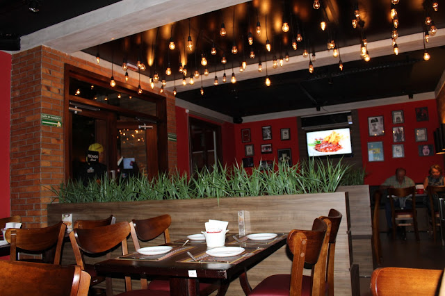 Por dentro, o ambiente é ainda mais agradável. Também completamente inspirado nos lugares norte-americanos de mesmo serviço, o Freddy’s é confortável e aquele tipo de lugar que te faz gostar de estar ali (bastante apropriado, visto que se sentir bem é, depois da fome, o principal incentivo para o consumo do serviço). São três ambientes: o interno (o que mais me atraiu, pela decoração), o externo e ainda um espaço infantil. A trilha sonora do ambiente, que mistura rock, pop e trilhas sonoras de filmes é um atrativo a mais e torna a experiência do Freddy’s ainda mais satisfatória.